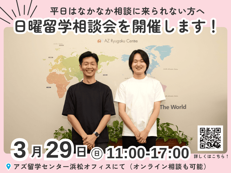 最新インフォメーション 2025/12/22 冬季休業のお知らせ&2026年のご留学相談受付中 2025年も大変お世話になりました!円安が続き、世界情勢も不透明な中で、留学を取り巻く環境は決して易し ...