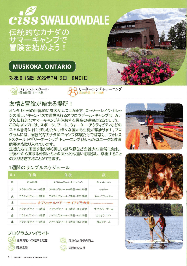 CISS Canada (スワローデール・キャンプ)学校・コースについて