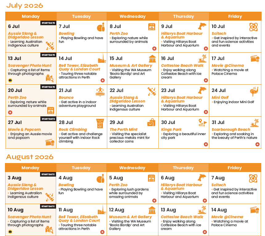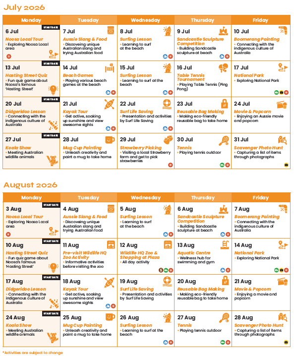 | ヌーサ:2026年7月6日(月)開始~8月24日(月)開始 | |