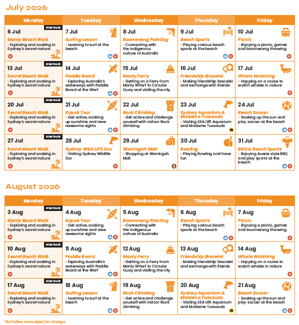 | 開講日程 | シドニー:2026年7月6日(月)開始~8月17日(月)開始 |