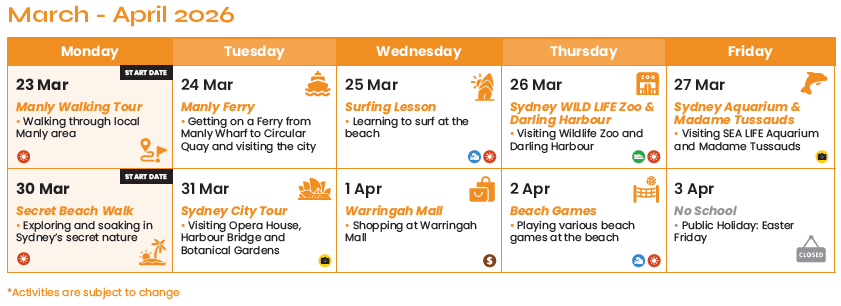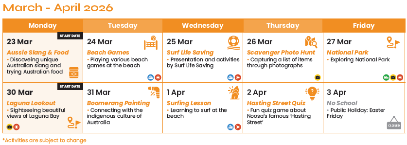 オーストラリア内に6キャンパス持つLexisが開催する毎年人気の短期ジュニアプログラム。春休みはオーストラリア人にも人気の2都市(ヌーサ校・シドニー校)で開催。様々な国から集まった同年代の参加者と勉強できるので、様々な刺激を受けることができます(キャンパスにより国籍比率は異なります)。 *XPLORERはパース校でも開催されていますが、2026年の春は2月2日〜3月13日で、日本の春休み期間中の開催はありません。