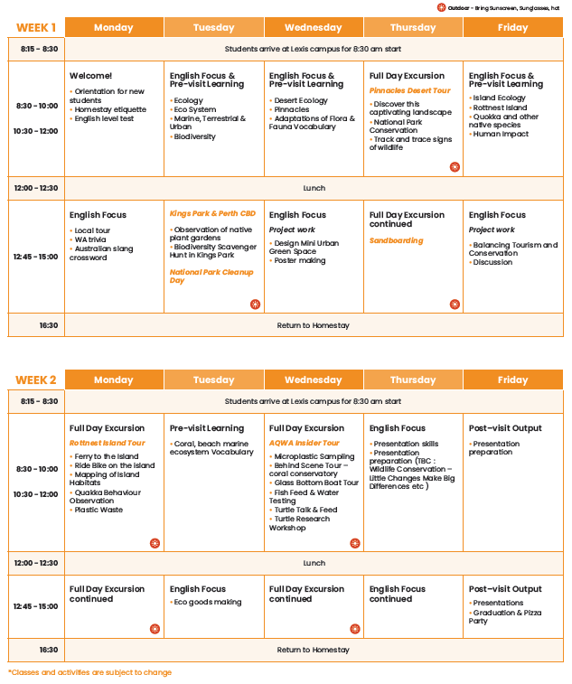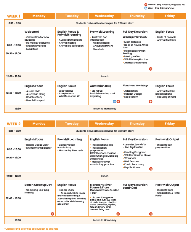 サンシャインコースト校スケジュール