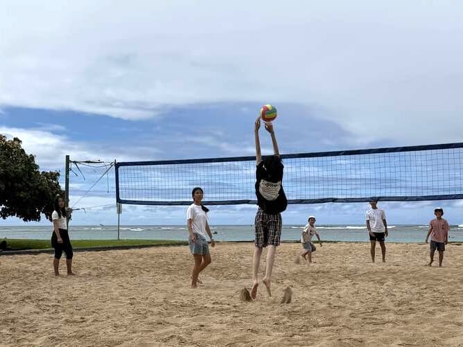 学校はプログラムがいっぱいで、ビーチバレーやフラダンスを習ったりととても楽しい。