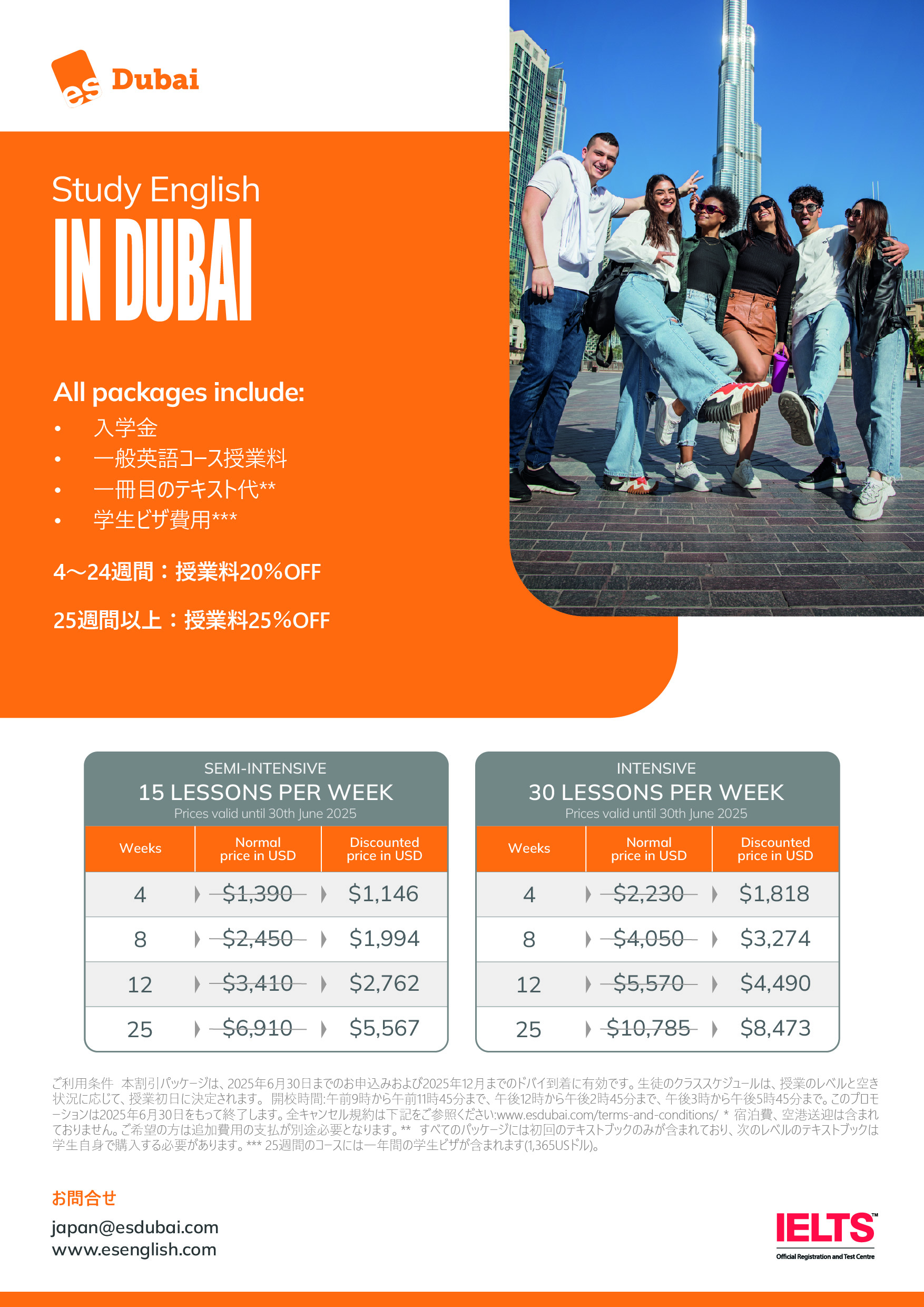 ES Dubai コース授業料20-25%OFFキャンペーン