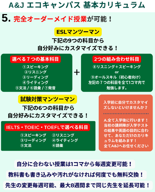 一般英語コース(ESL)セミスパルタ方式