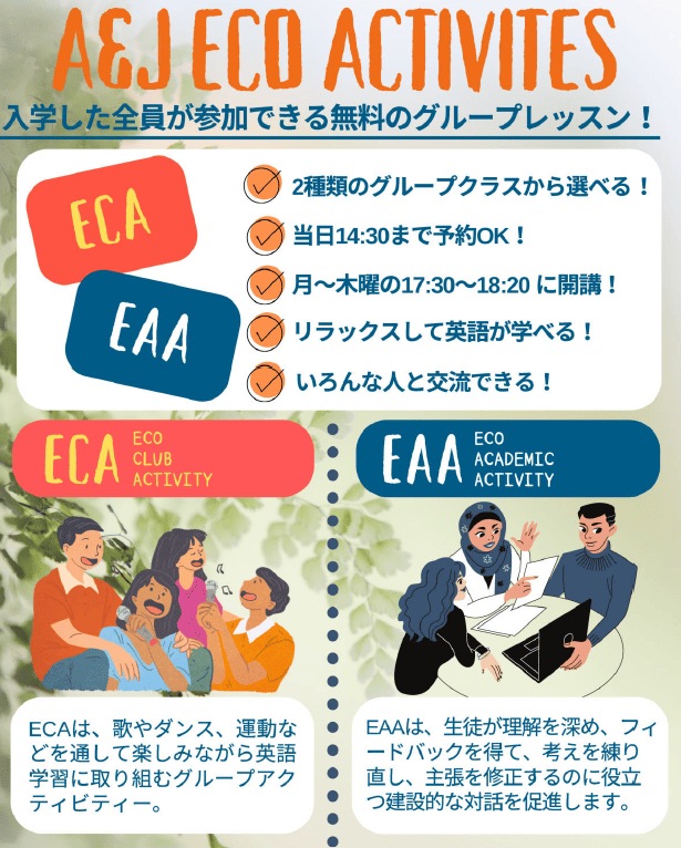 | ・ECO RELAX PLUS | マンツーマンクラス3コマ+グループクラス2コマ |