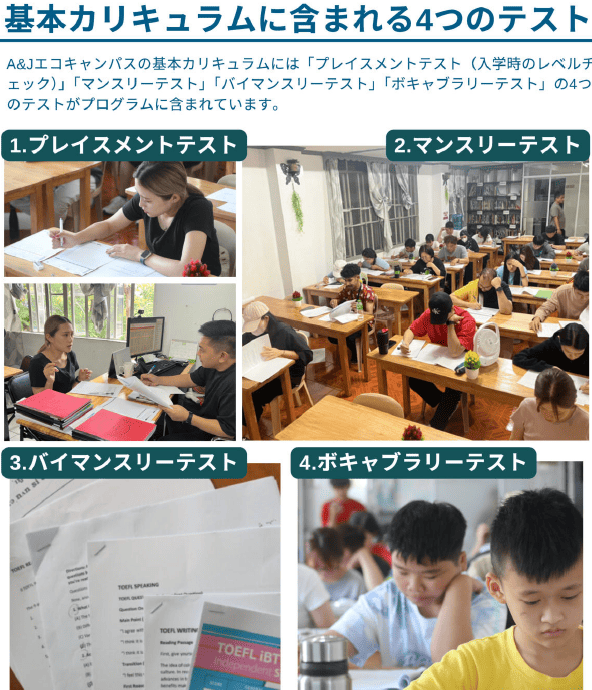 | ・JUNIOR テストコース(12歳~16歳) | 4マンツーマンクラス4コマ+グループクラス2コマ |
